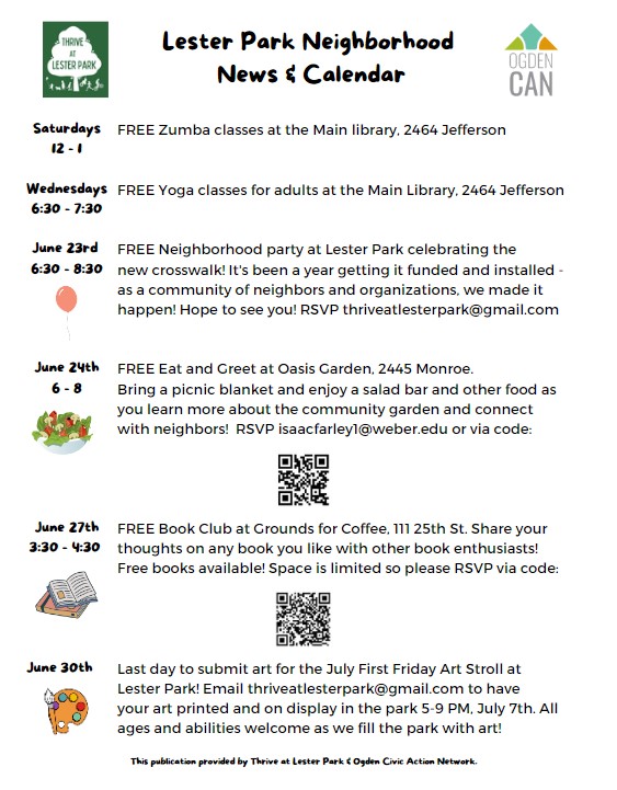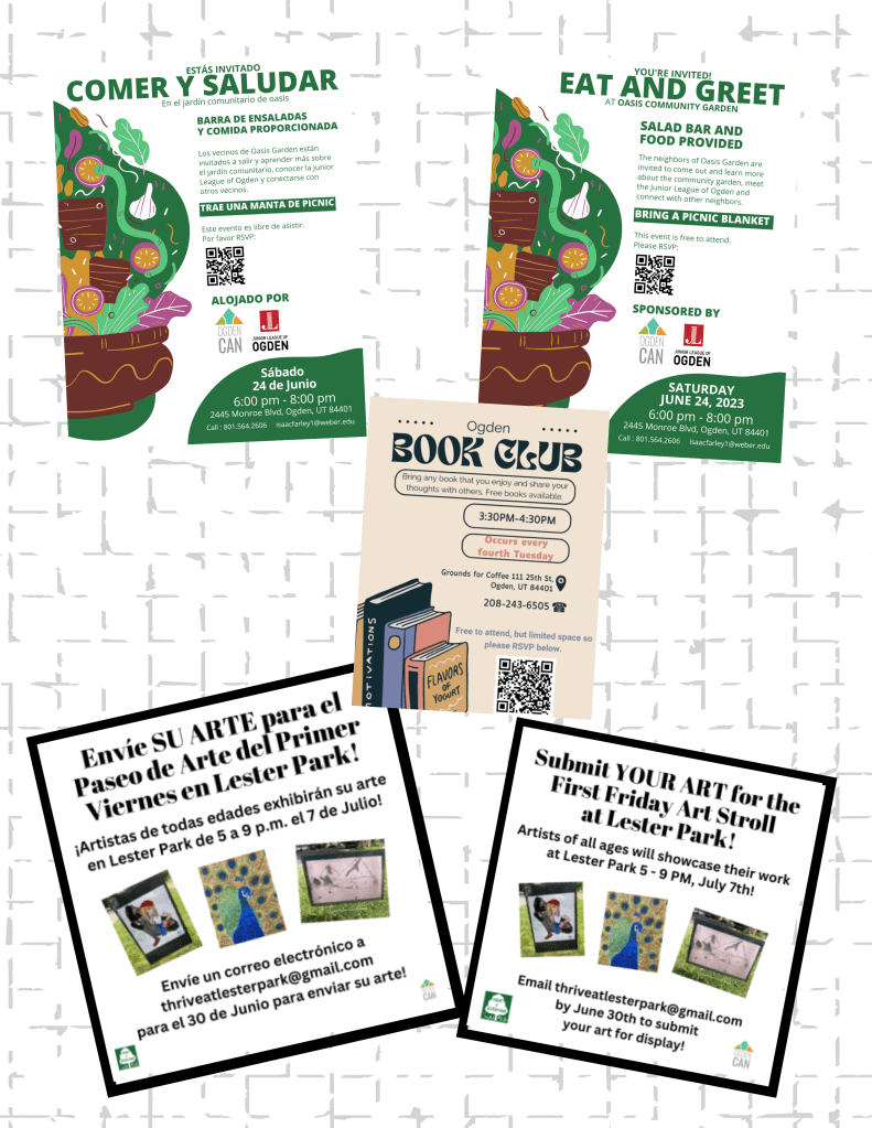 The calendar will also go on our website. I think it’s great to support our neighborhood efforts to do great things in Ogden and become better friends! Check it out and share it! Again, please let me know if you know about local events. Space is limited (especially since we want everything translated in the next one), but I’ll highlight what I can. Thanks! ![]()