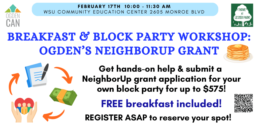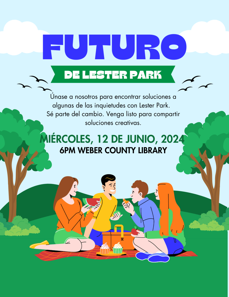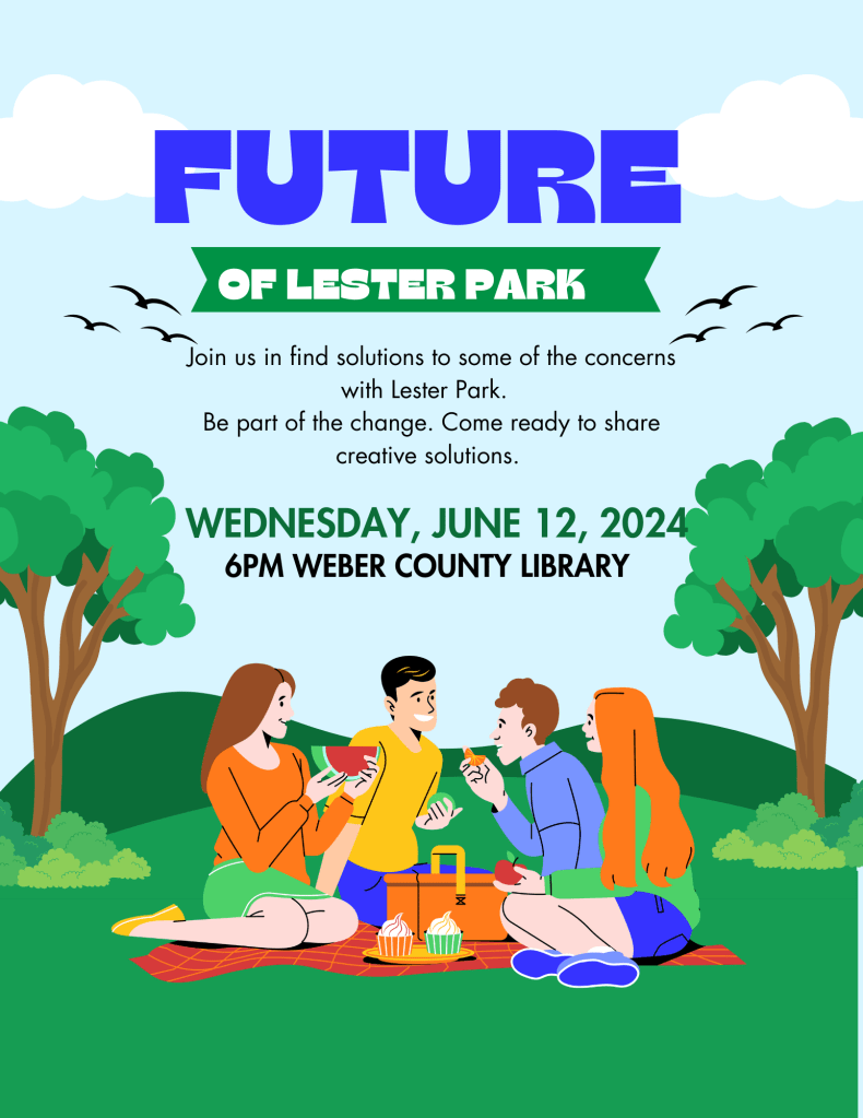 Meet with Ogden City Parks and Rec Department and Police Department to give input on first phase of Lester Park remodel. The RAMP funds are here! Let’s help them know how to spend it! 🙂